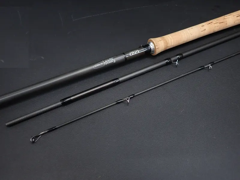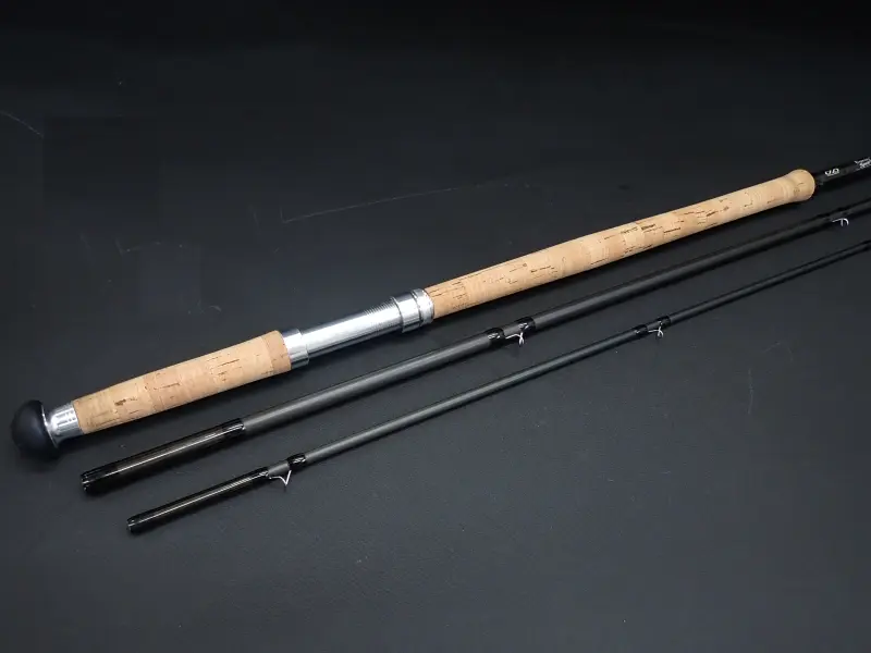 国内のスペイロッドメーカーで数々の名竿を残したCND。しなやかなティップ、ベリーからゆったりとベンディングするオールラウンダーロッド。大河で頼りになる一本。グリップに汚れ、ブランクは綺麗です。ティップセクションに製造過程のものと思われる白い斑点状のすじがみられます。