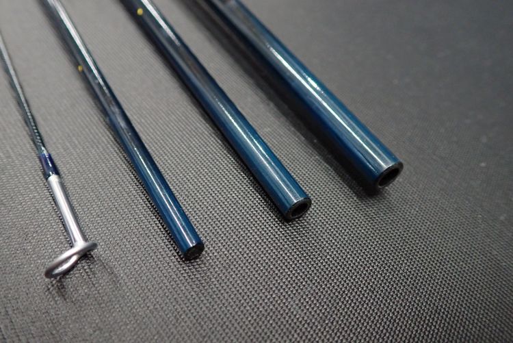 ベースのロッドは品番からプロフェッショナルIIの#8ロッドと推察されます。張りを感じるミディアムファストアクション。#3と#4セクションのフェルールキャップ(先端の詰め物)が欠損しています。その他の使用感は少なめで、程度良好です。