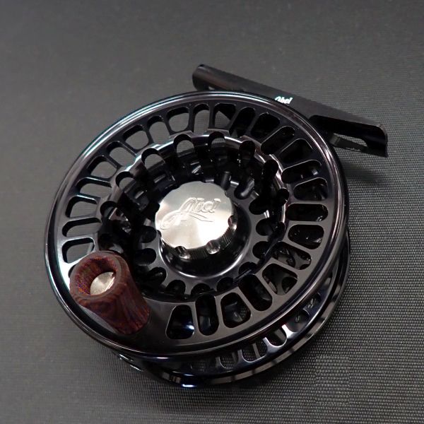 ラージアーバー化したスプールは大胆に肉抜きされています。クリッカーをスプール側に取付、本体側にギアを設置したユニークな構造により本体フェースはすっきりしたデザインとなりました。かっちりとしたクリック感。スプール内側にはメイフライ・カディス・ストーンフライのシルエットが切削彫刻。塗装はエーベル伝統の厚く艶やかな黒塗りです。