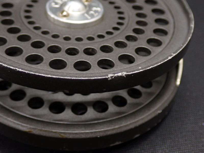本体、スプール外周部全体的に擦れ小傷あり。スプール外周部に一箇所打痕あり、歪みはありません。クリックテンションは確りしています。テンションレギュレーターによる調整も確りと利きます。機関良好。
