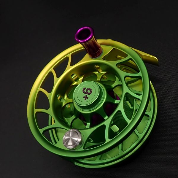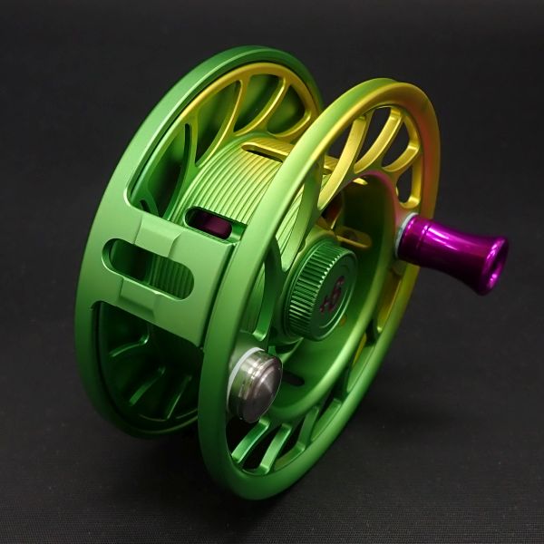 手作業のアルマイト処理によるゴールドとグリーンのグラデーション、ウルトラバイオレットのハンドルやセンターキャップの唯一無二の一品です。