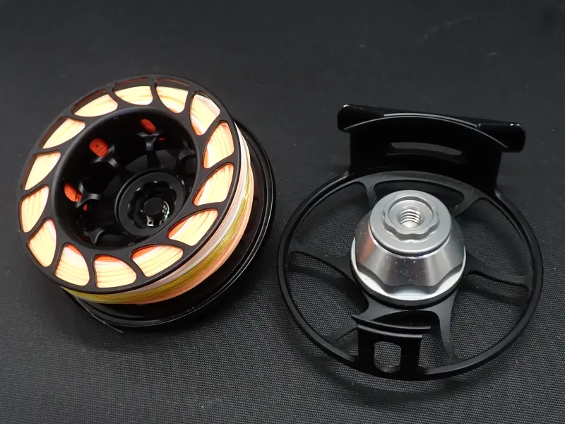 フットはボディとの一体切削。カーボン製のスムーズで安定性の高いドラグを採用。ボディはドラグシステム自体を組み込んだ高剛性な構造です。フットに僅かな装着痕、本体下部に僅かな小傷あり。殆ど使用感の無いフローティングラインが巻かれています。詳細は不明おまけです。
