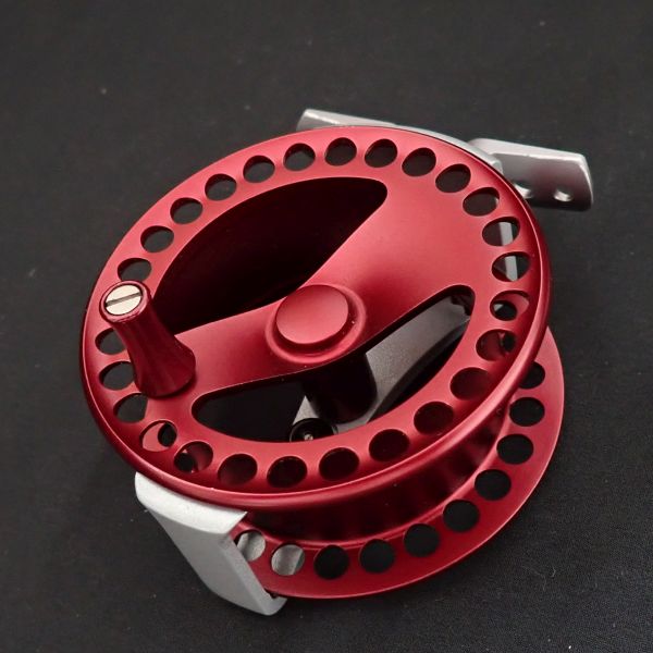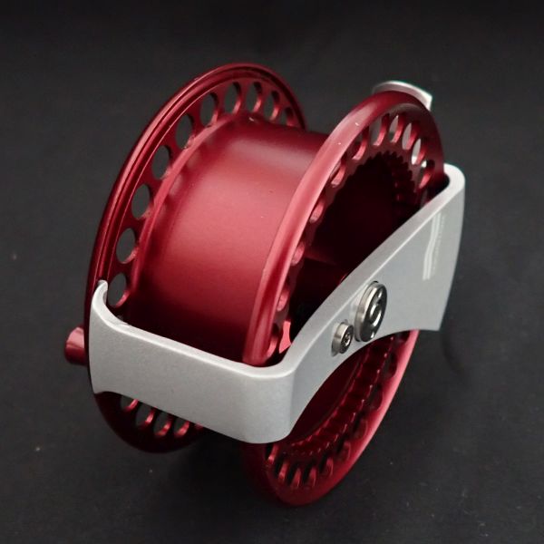 鮮やかなマホガニーレッドスプールにグレイのフレームの印象的なルックス。