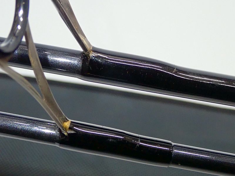 フォアグリップ前部のハイカコルク部の割れ、