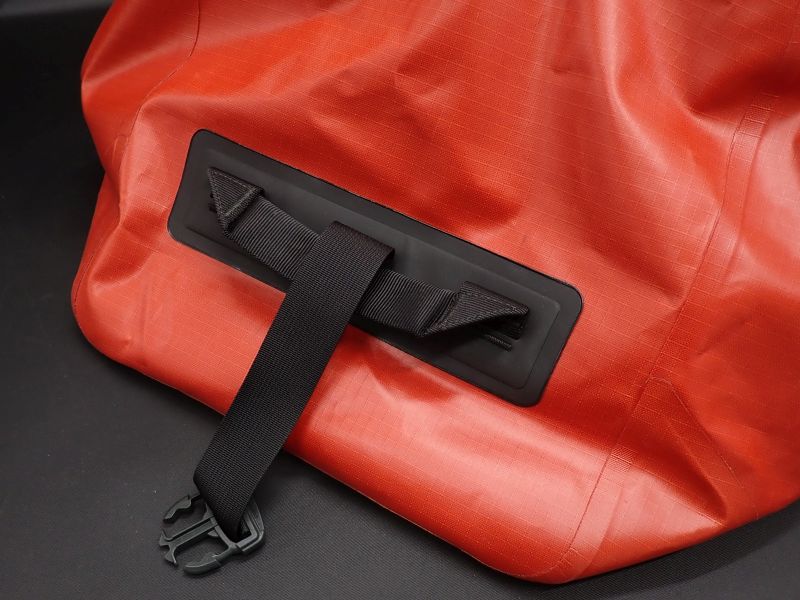 大量のギヤを持ち運ぶためのロールトップ デザインのダッフルバッグ。